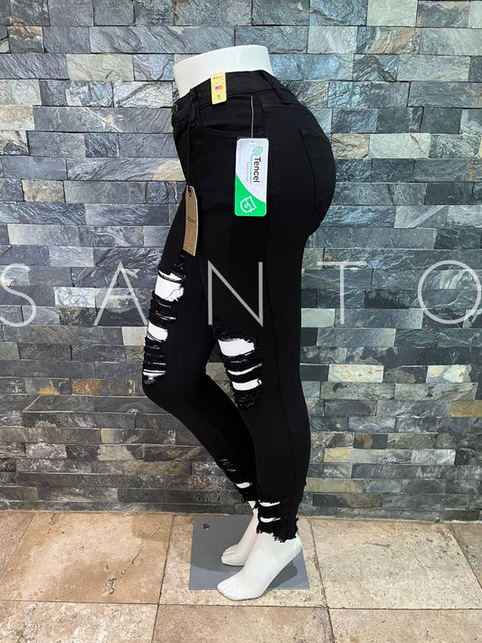 JEANS VIBRANT ENTUBADO NEGRO ROTO